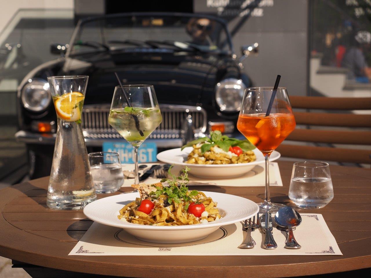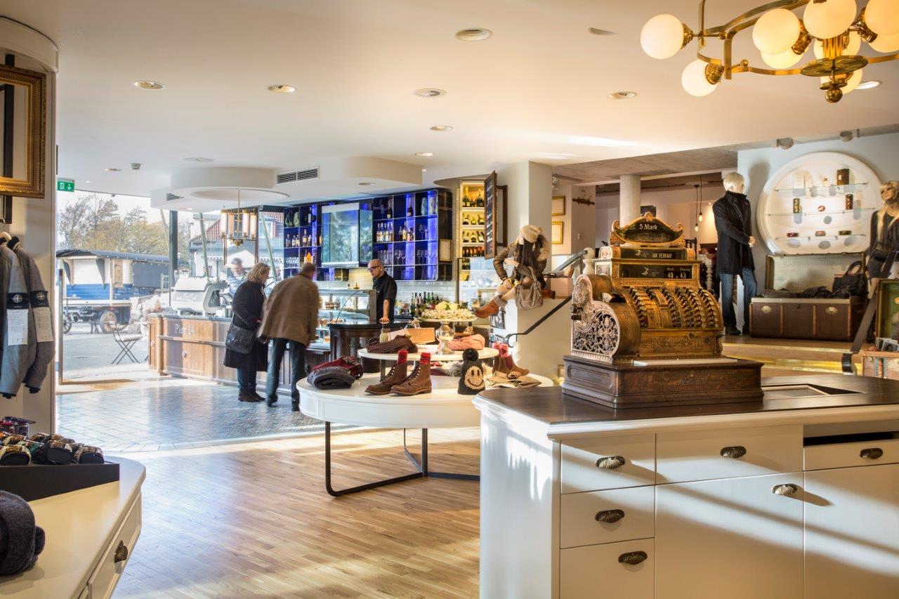Dem Ganzen Ensemble wird natürlich noch ein Highlight draufgesetzt. Denn beim shoppen und anprobieren reserviere ich gleich einen Tisch im angrenzenden, hochkarätigen Restaurant. Nicht nur die Speisen sind dabei von Bester Qualität. Eine leckere „handmade“ Kuchenauswahl, der ausgesuchte, hochwertigste Röstkaffee oder die excellente Weinauswahl lassen einem das Herz aufgehen.